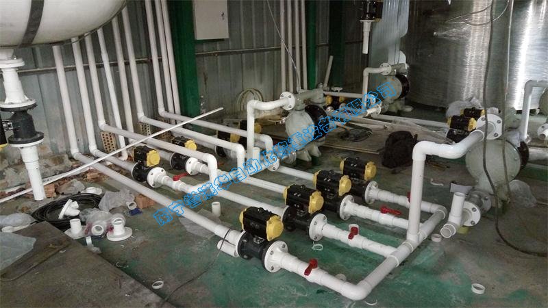 (1)液體反應釜稱重配料系統(tǒng):4臺反應釜安裝3臺不銹鋼稱重傳感器,并采用2臺地上衡對料桶輸送到反應釜的重量控制。對添加的水采用電磁流量計進行計量和反應釜的重量進行對照,雙重保護。液體反應釜配料系統(tǒng)也進入中控室計算機系統(tǒng)進行聯網。